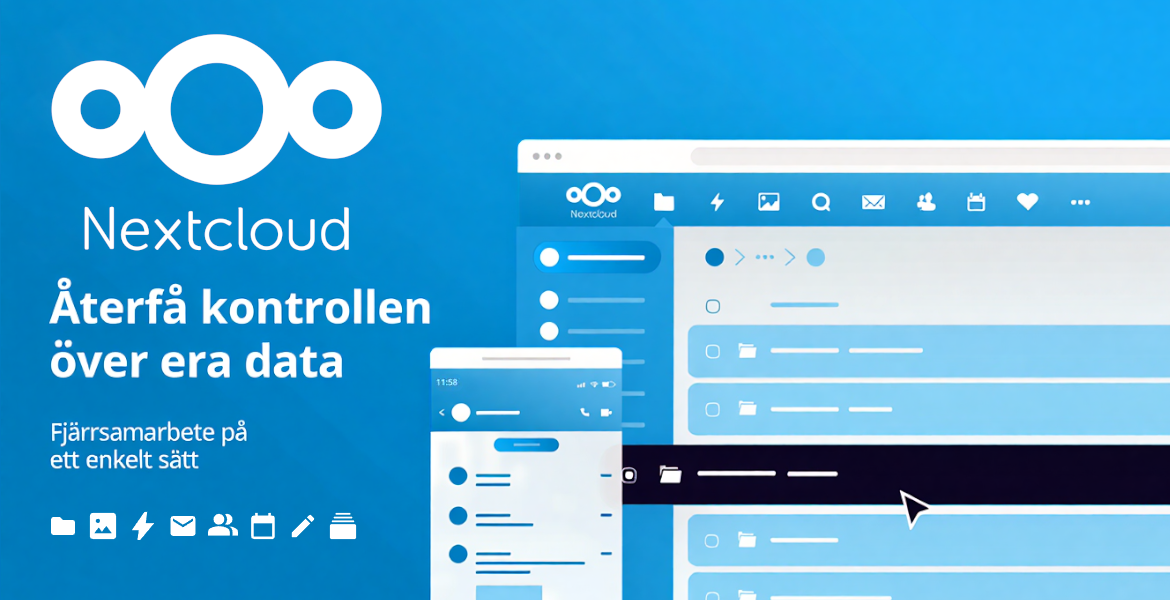 Nextcloud är en samarbetsplattform som samlar filhantering, dokumentredigering, kalender, kontakter och kommunikationsverktyg på ett ställe. Precis som Google Workspace eller Microsoft 365 ger det anställda möjlighet att arbeta med dokument var de än befinner sig, dela filer med kollegor och ha videomöten – men med en avgörande skillnad: du bestämmer själv var dina data lagras och vem som har tillgång till dem.