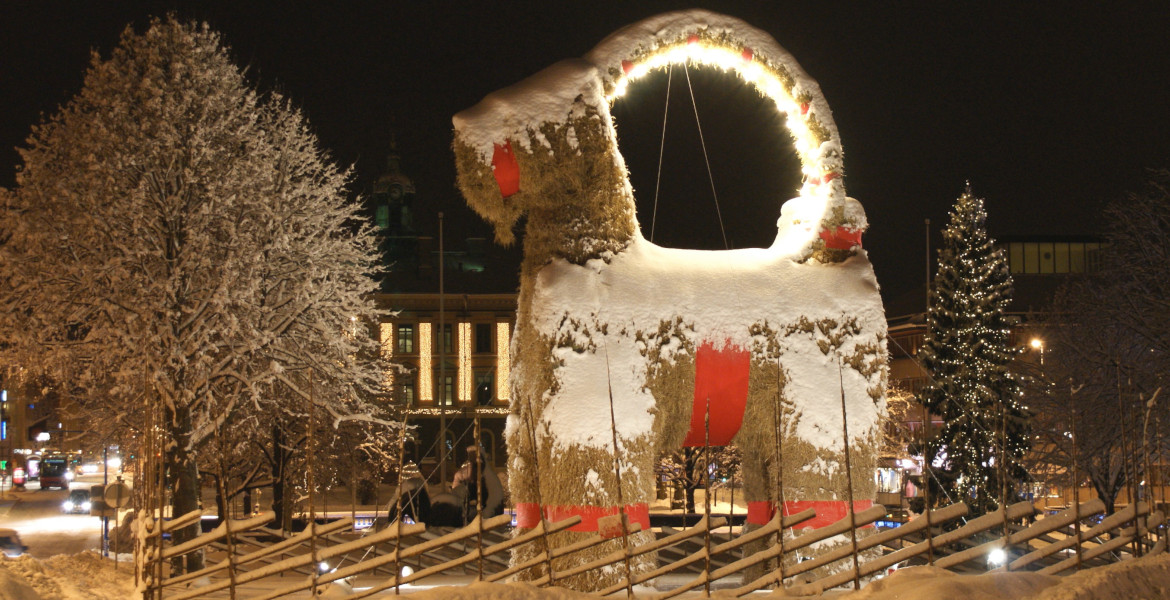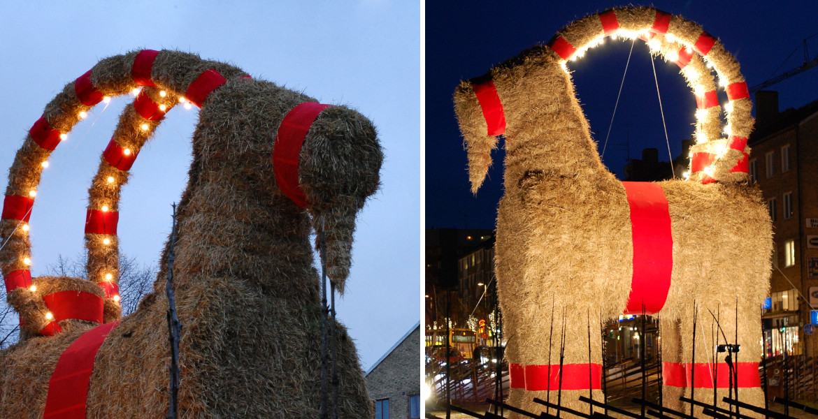 Den är nära tretton meter hög, väger flera ton och byggs av halm. Varje första advent samlas invånarna i Gävle för att inviga stadens berömda julbock. Men Gävlebocken är också känd för sitt återkommande öde: den har en oturlig förmåga att gå upp i lågor.